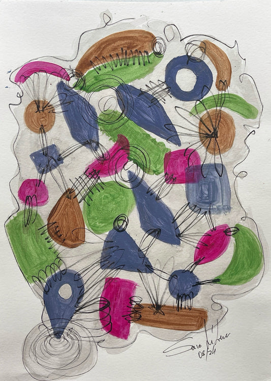 Sara Líbera’s Connections collection blends abstract expression with contemporary sensibilities, characterised by bold colours, swirling spirals, and layered textures. Each piece pulses with dynamic energy, capturing movement, depth, and a sense of spontaneity that mirrors the fluid and unpredictable nature of life itself. Through her distinctive style, Sara transforms chaotic forms into harmonious compositions that invite contemplation on the intricate connections between people, environments, the self, and the universe. Connections is a powerful exploration of unity and transformation, offering thought-provoking artwork that resonates with both complexity and beauty.